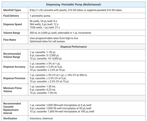 • Washing and multiple reagent dispensing system eliminates the need for multiple instruments. Efficient and multitasking, the microplate washer with peristaltic and syringe pump modules provide flexibility for benchtop or integrated automated systems